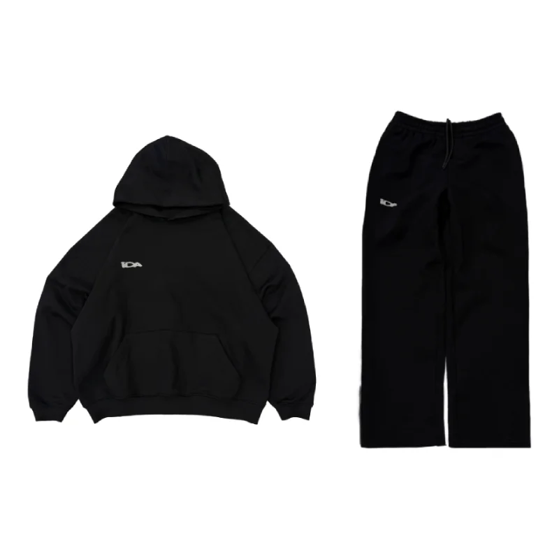 The Black IDA Supply Logo Pullover Tracksuit blends comfort, style, and streetwear attitude in one iconic set. Crafted from 100% cotton 360 GSM, both the hoodie and straight-leg sweats deliver a soft, durable feel. The pullover hoodie features a relaxed, cropped, and boxy fit, small front emblem, and adjustable drawstrings for a personalized look. The matching sweats offer a baggy silhouette with a key pocket, perfect for everyday essentials. Designed to fit true-to-size—or size down for a slimmer look.